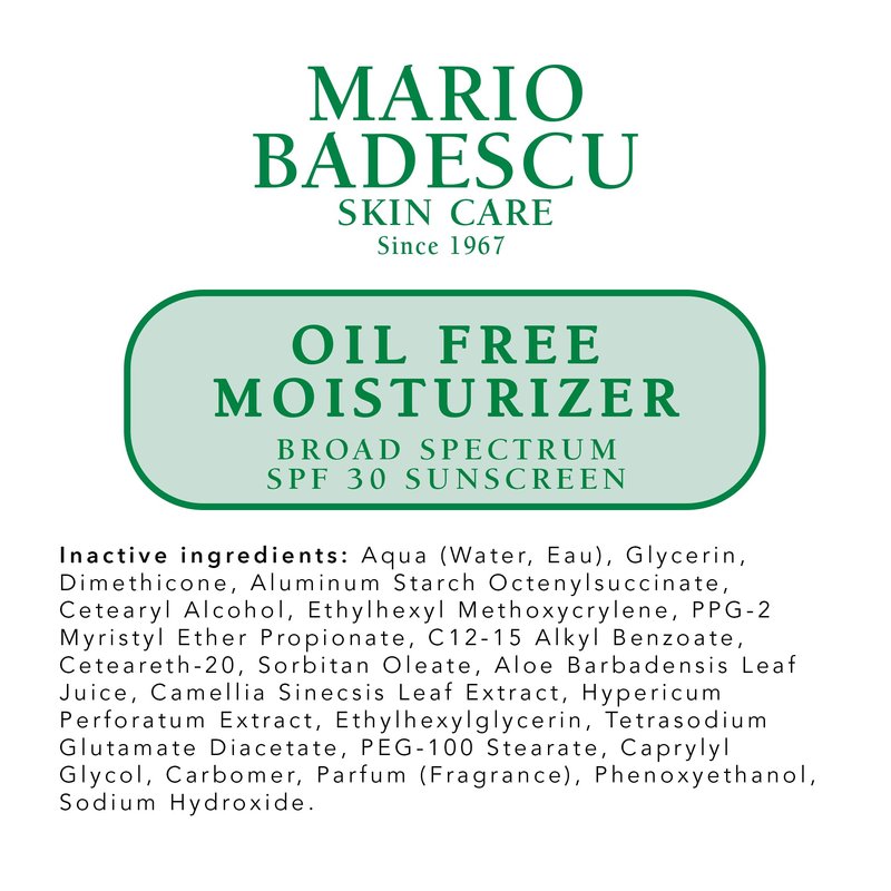 Mario Badescu Oil Free Moisturizer with Broad Spectrum SPF 30 Face Sunscreen for Combination, Oily & Sensitive Skin, Lightweight and Non-Greasy Formula with Green Tea & Aloe Vera, 2 Fl Oz
