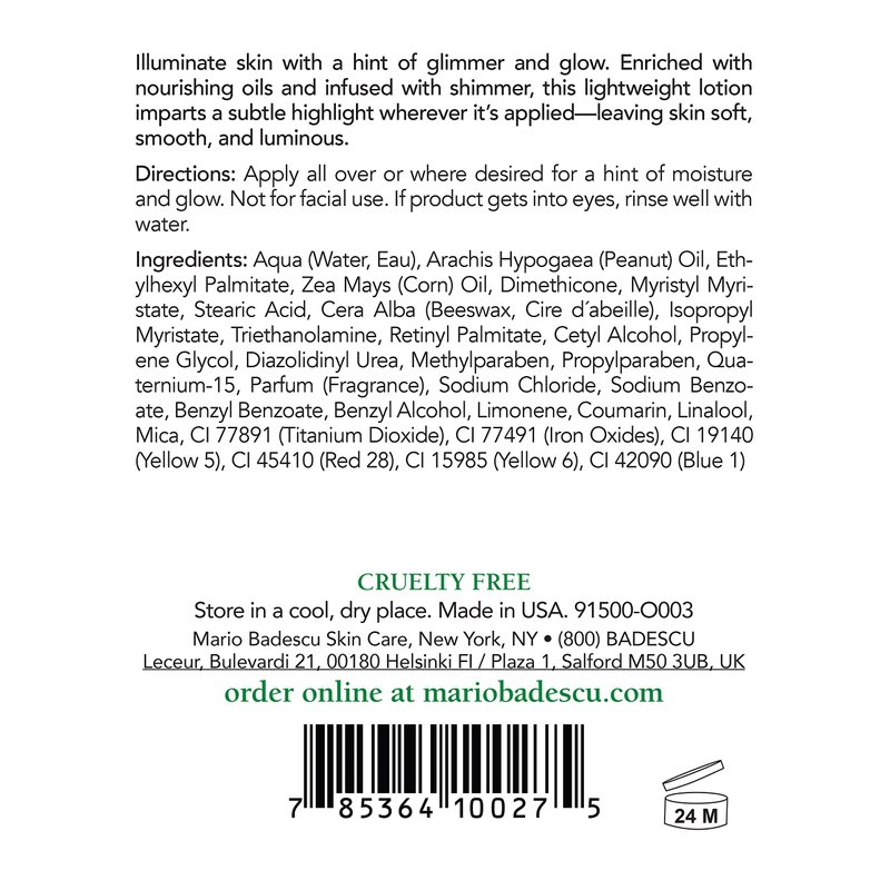 - IDEAL FOR ALL SKIN - Anti-oxidant, non-sticky, lightweight body shimmer lotion; Reduces the appearance of dull, dry skin with natural moisture retaining ingredients like beeswax and peanut oil