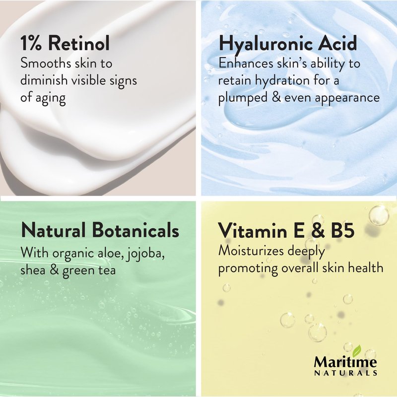 Maritime Naturals Retinol Moisturizer for face with Hyaluronic Acid & Organic Ingredients | Professional Results with Retinol Face Moisturizer | Day & Night Cream for Women & Men (120ml)