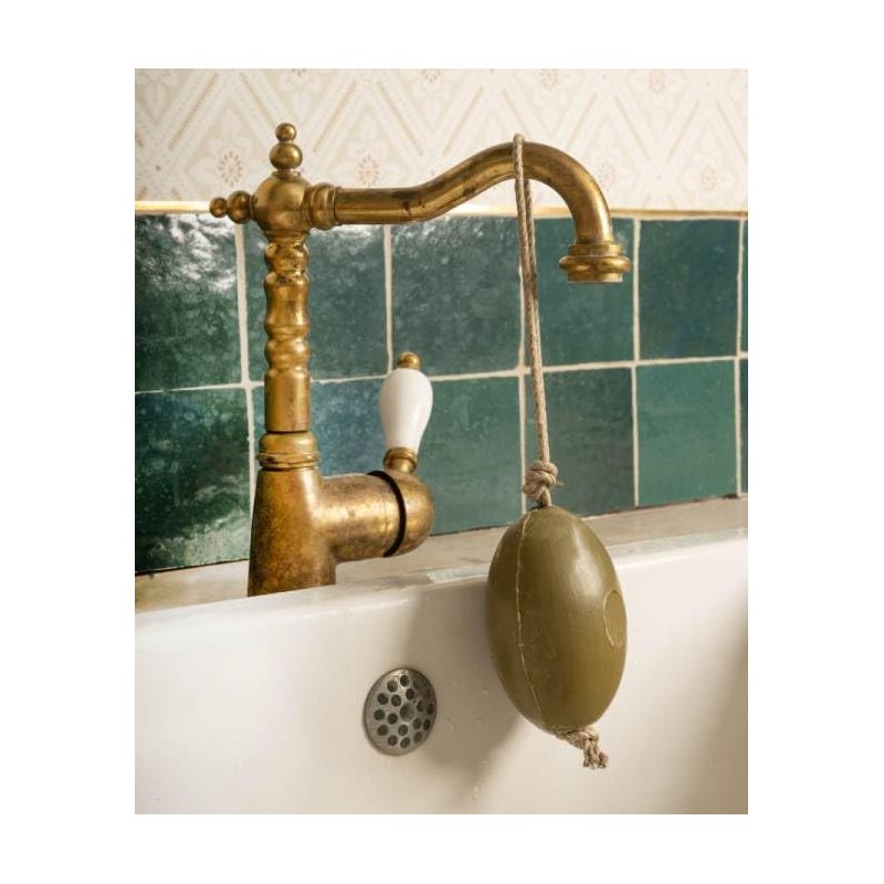 - [ BATH & BODY ] Very easy to use for daily washing, it hangs easily from your tap or shower column. Practical and decorative, this very vintage Marseille soap can be installed in your bathroom, kitchen, toilet, garden or even your workshop! In keeping with the Marius Fabre soap factory's commitment to zero waste and respect for the environment, this soap comes unpackaged, with its linen rope. Net weight: 290 g