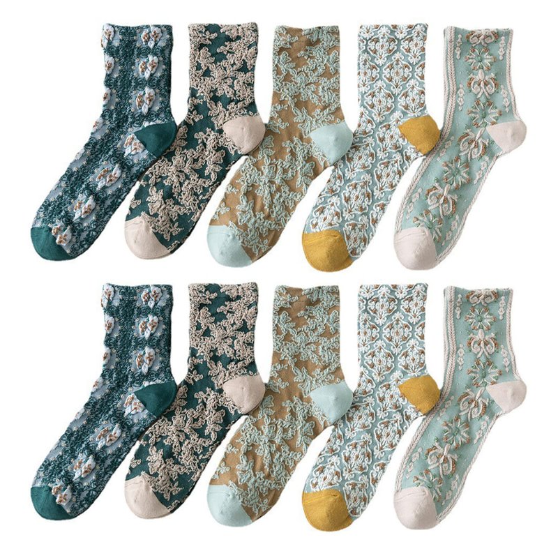 - 75% Cotton, 20% Polyester, 5% Spandex. Soft, breathable, durable, absorbing sweat to keep your feet dry. Retro socks, vintage socks, embroidered socks, flower socks, floral socks, pattern socks, pattered socks, lace socks, nordic socks, women’s fun socks, trendy socks for women, fun crew socks for women, cottagecore socks, unique socks for women, coquette socks, cute white socks, fun crew socks for women