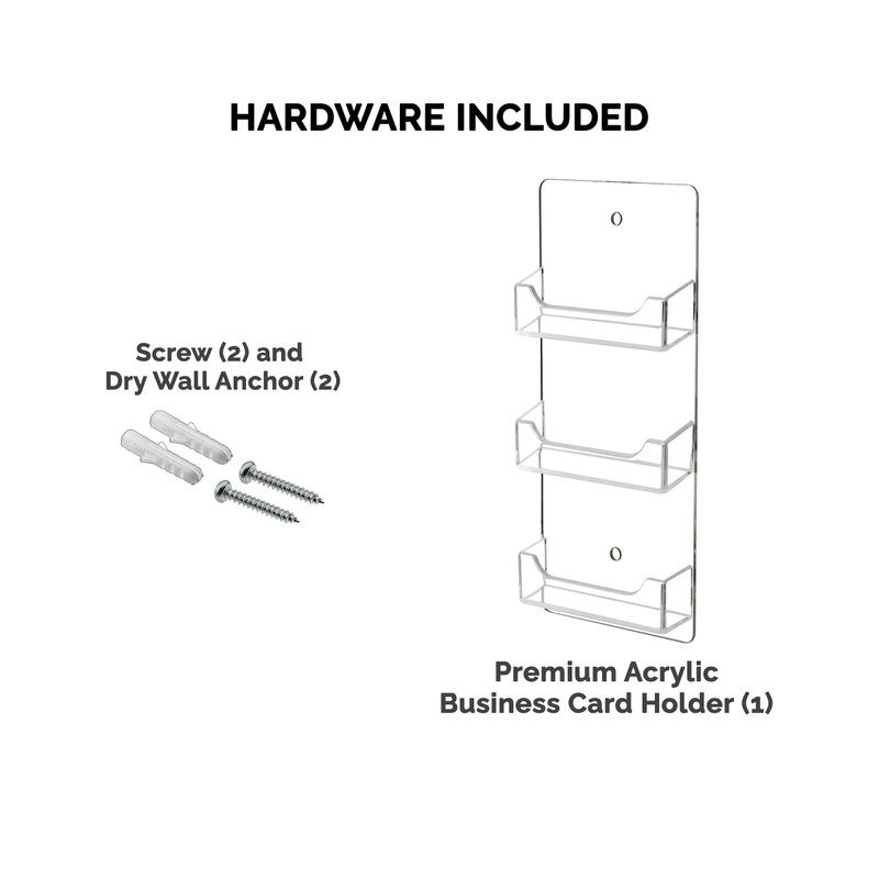 Marketing Holders Wall Mount Business Card Holder with Hanging Hardware For 3.5" x 2" Cards 3 Pocket Clear Acrylic Vertical Display Rack Organizer Holds 50 Business or 30 Gift Cards