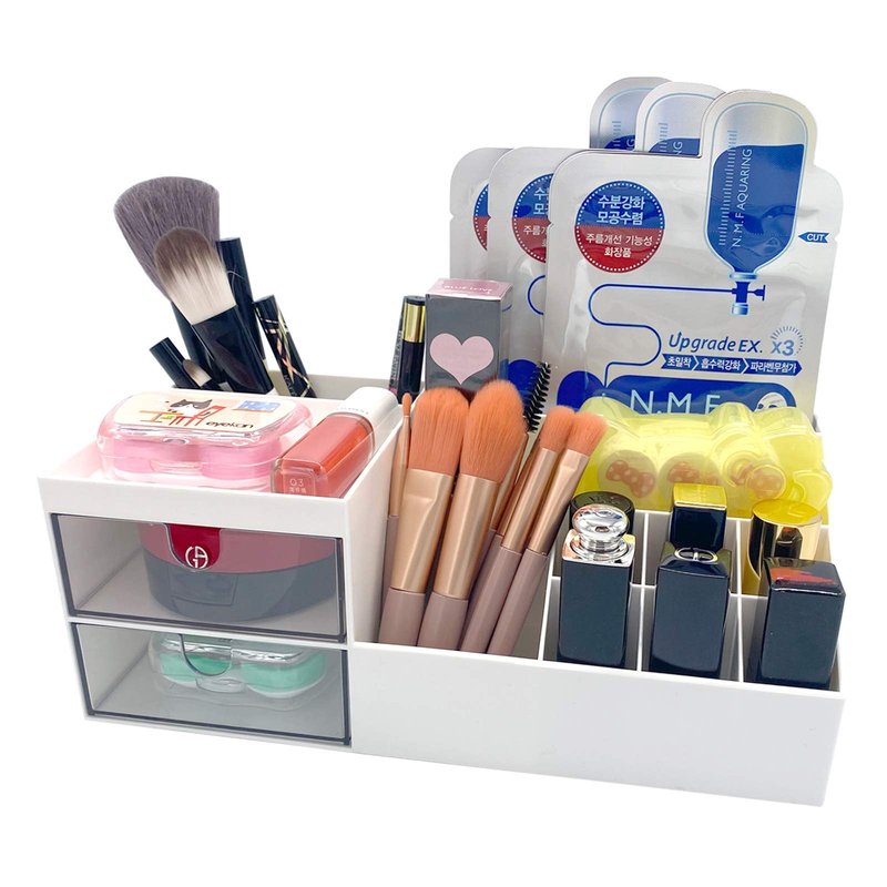 - Easily Find What You Need: Makeup Organizer with 10 Compartments and 2 Transparent Drawers.