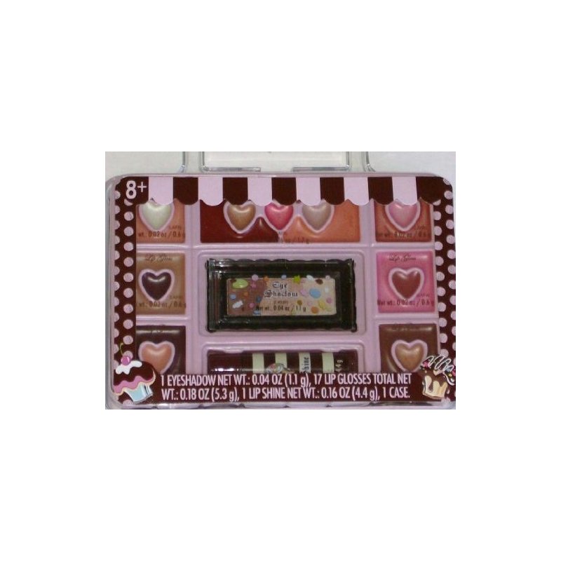 This Sweet Treats cosmetic set is loaded with real make-up to make dress up fun! It includes eye shadow and lip gloss in a variety of shades. It is perfect for dress up fun! Sweet Treats cosmetic set 1 Eye shadow palette 17 lip glosses 1 lip shine tube Recommended for ages 8 and up Brand is Markwins