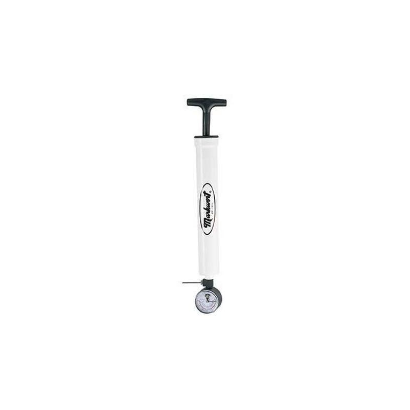- Multi-purpose 12.5" pump with ball pressure gauge and 6" hose