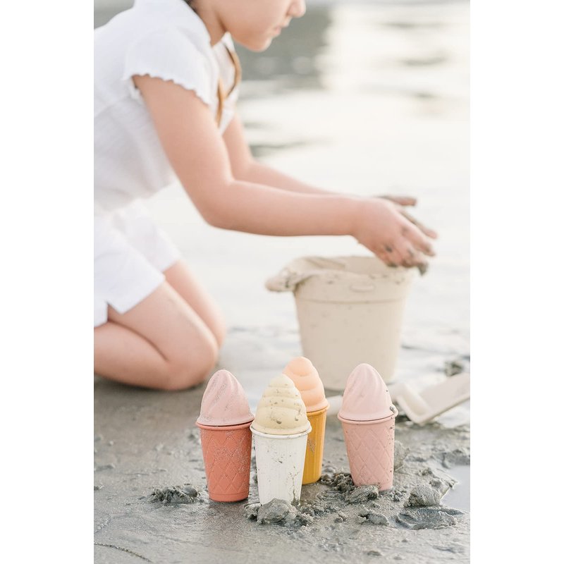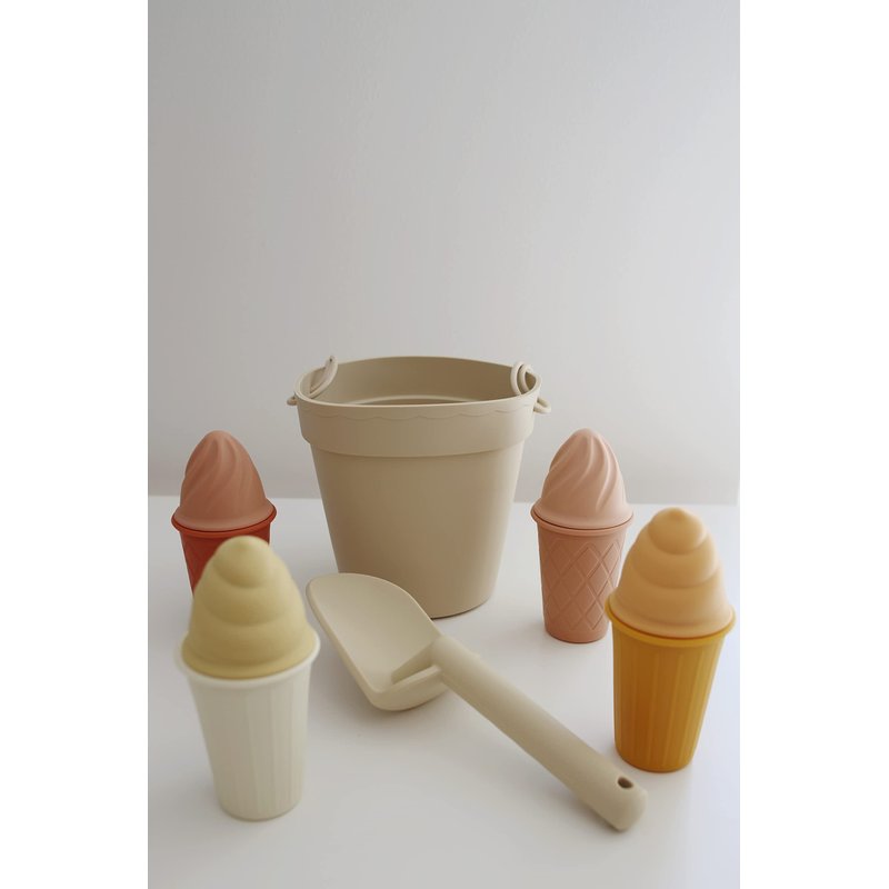 Marlowe & Co Silicone Ice Cream Toy Beach Set, Silicone Bucket, Shovel, 4 Ice Cream Cone Sand Molds, Beach and Pool Toy (Natural Sunset)