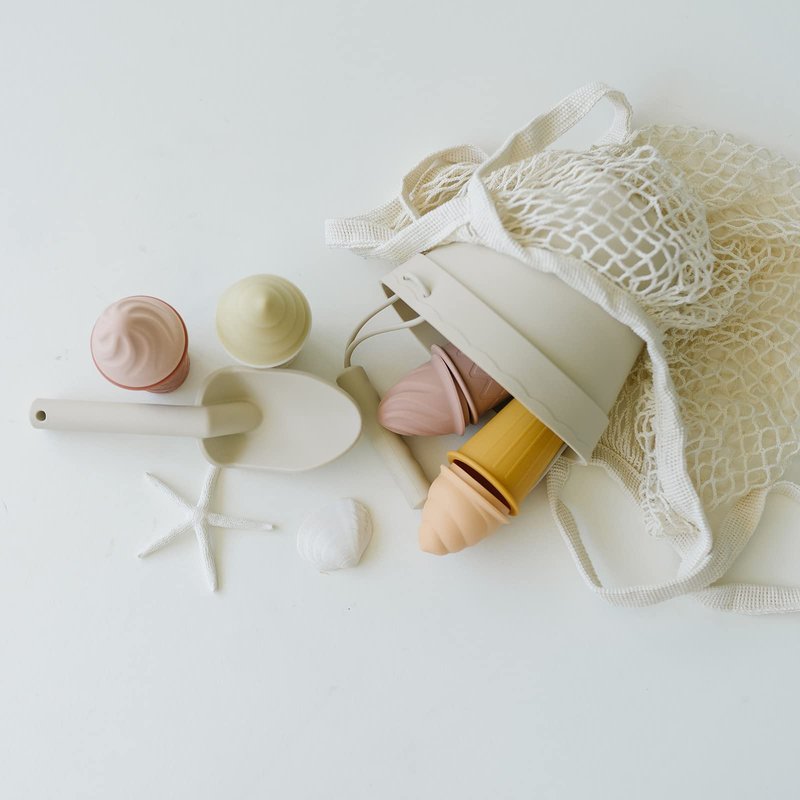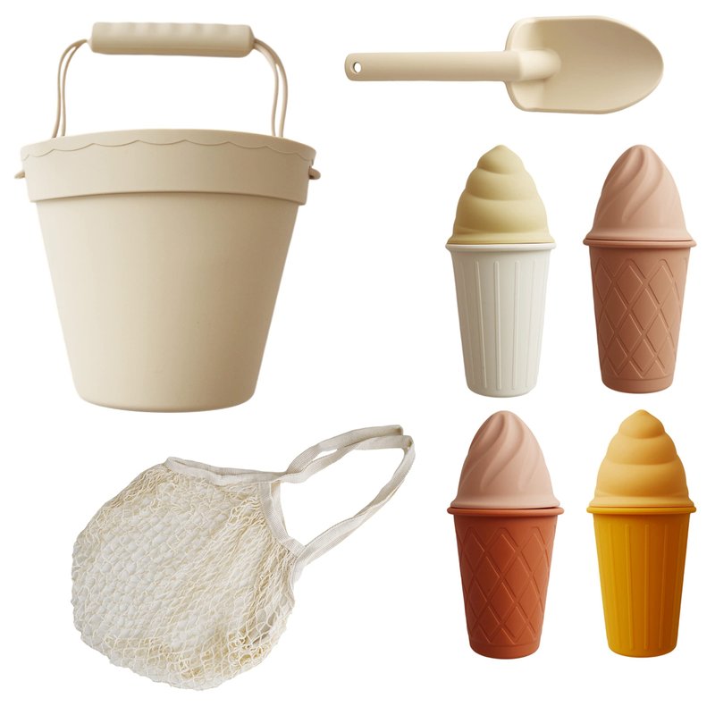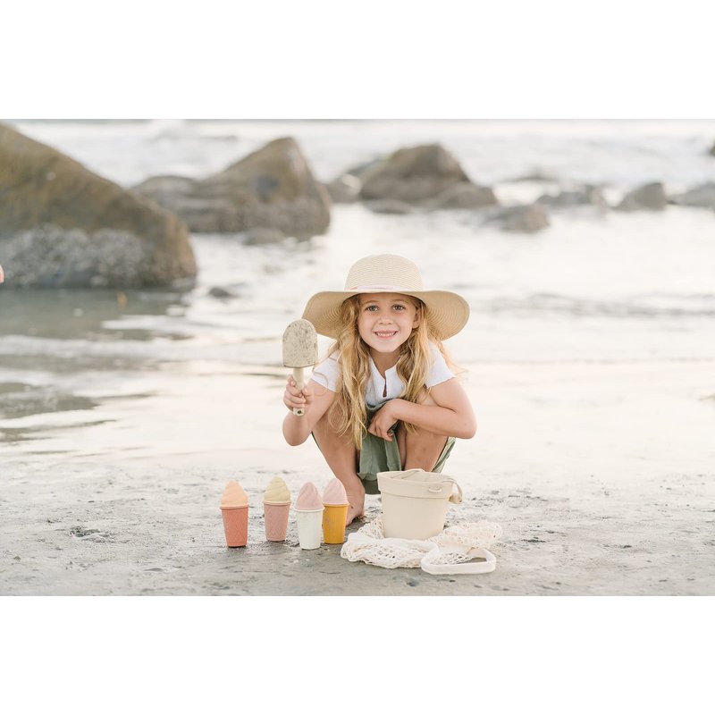 - Thoughfully Designed: Our 11 piece beach set includes a bucket, shovel, 4 ice cream cones, 4 ice cream tops, and one cotton travel bag: They are thoughtfully designed and feature classic neutral colors inspired by nature
