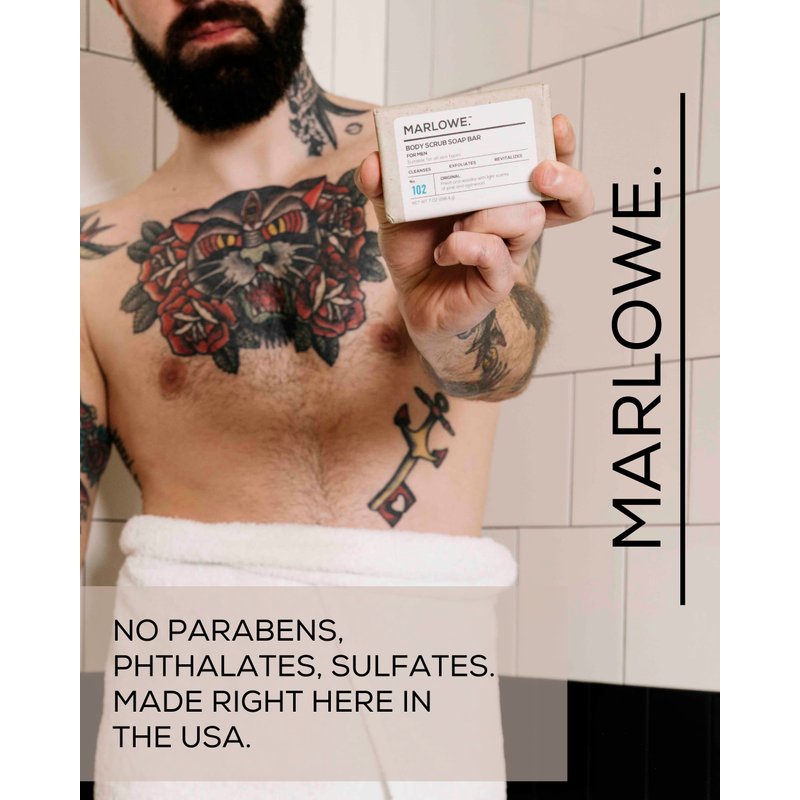 - Fresh Masculine Scent: Our Original exfoliating soap bar is lightly scented with agarwood, followed by a balance of sandalwood and musk. Experience the fresh invigorating scent of your favorite MARLOWE. scrub soap