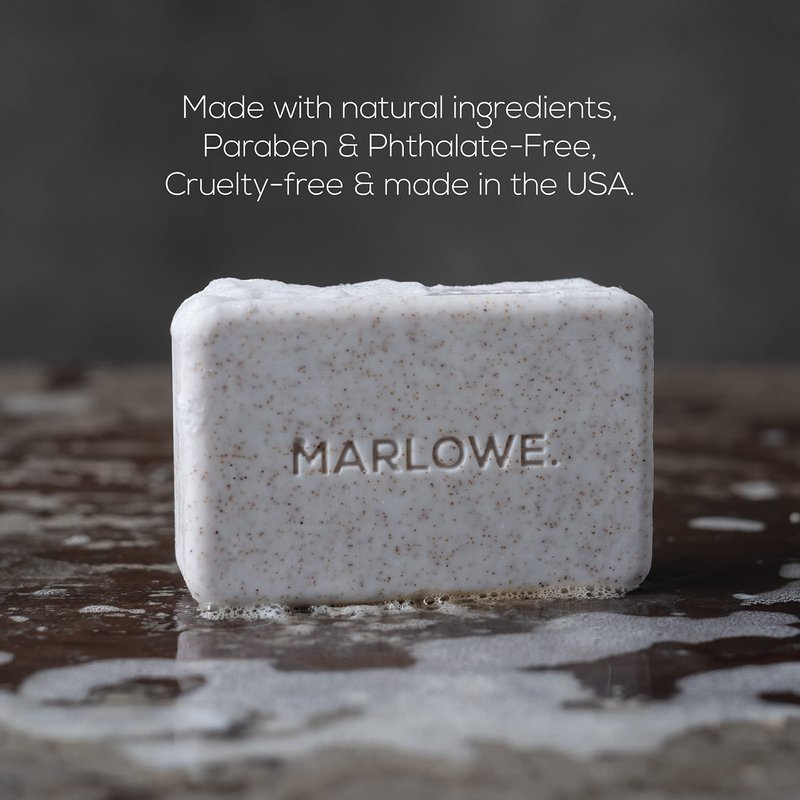 - Scrub It Away: MARLOWE. deep cleansing bar soap for men uses apricot seed powder and ground pumice to buff away dryness for smooth, clean skin. These mens soap bars gently lift away dirt and rough skin without stripping natural moisture, with the support of Shea Butter & Olive oil to aid in moisturization