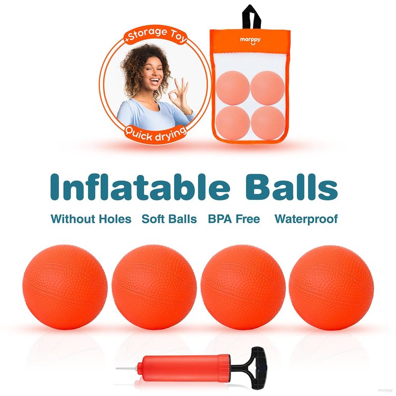 - Fun & Durable: Our toddler bathtub toys are made from high-quality materials. This basketball hoop for toddlers comes with 4 soft basketball balls, 1 easy to use basketball hoop, 1 mash bag, and 1 air pump for the toy balls. We pride ourselves with excellent customer service.