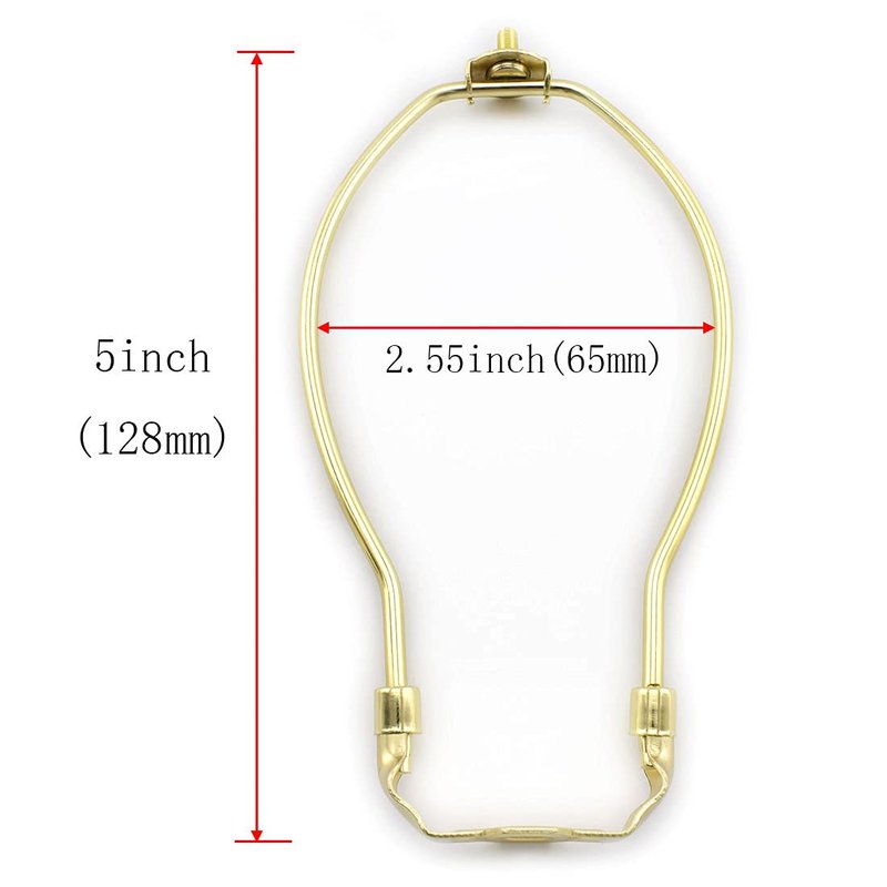 - Size: The lampshade harp holder is 5 inches / 128 mm in height (from the saddle bottom to the top shoulder), lamp holder maximum waist distance is 2.55"/65mm (please confirm your bulb size before placing an order), light base hole diameter is 10mm / 0.4 inches, and the lamp finial is 1.02 x 0.79 inches (H x Dia).