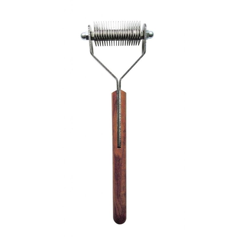 - RELIABLE DOG GROOMING TOOL: Made with stainless steel and a wooden handle for an easy grip, this pet rake stripper tool is perfect for deshedding and thinning your cat or dog’s coat.