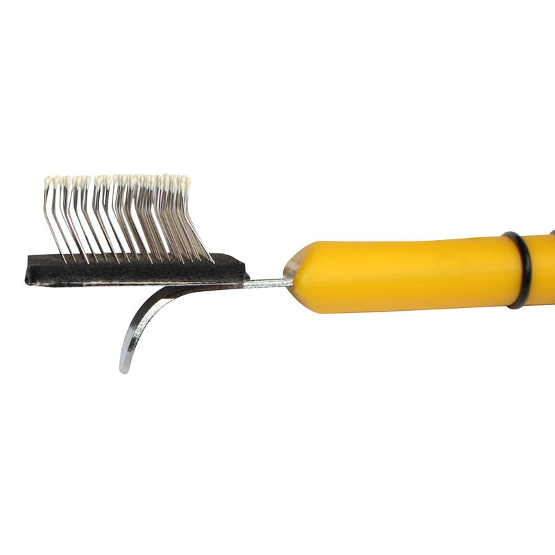 - Bristles are made of pressed high-grade steel with pins at the end for comfort