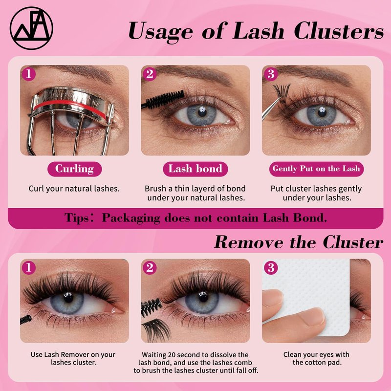 - EASY TO USE - Our lash clusters are taped to the package, you hold the root of the clump of lashes with the included tweezers and gently lift. Then use your lash Bond correctly with the right size lash clusters and stick them underneath your natural lashes to complete your perfect eye look. The roots of your lashes are so flat you'll barely notice they're there.