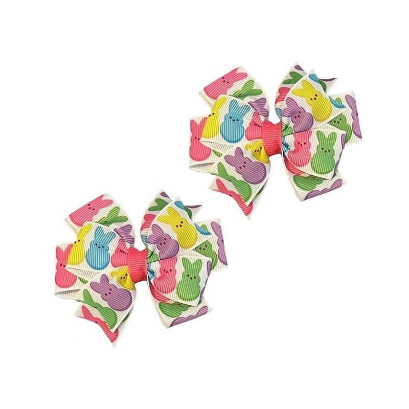 These bows come 2 in a set. Each set consists of one bow for the right side of the head and one bow for the left side of the head.