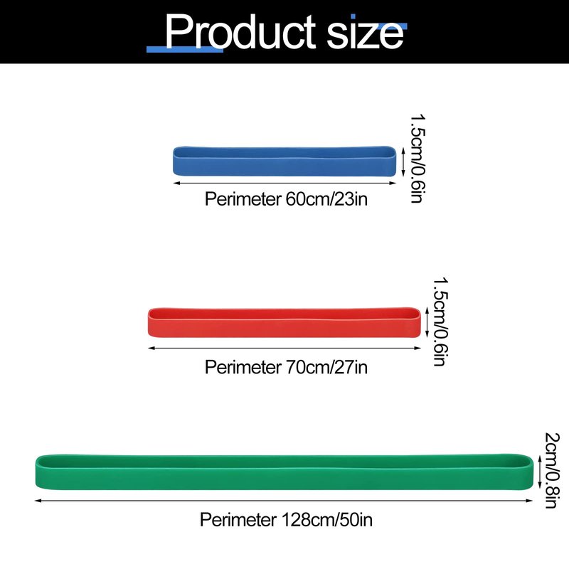 - More size options: these rubber bands have different sizes, the green rubber band circumference is 128 cm/ 50 inches and the width is 2 cm/ 0.8 inch; The red rubber band circumference is 70 cm/ 27 inches and the width is 1.5 cm/ 0.6 inch; The blue rubber band circumference is 60 cm/ 23 inches and the width is 1.5 cm/ 0.6 inch, you can distinguish them by color