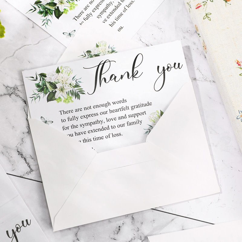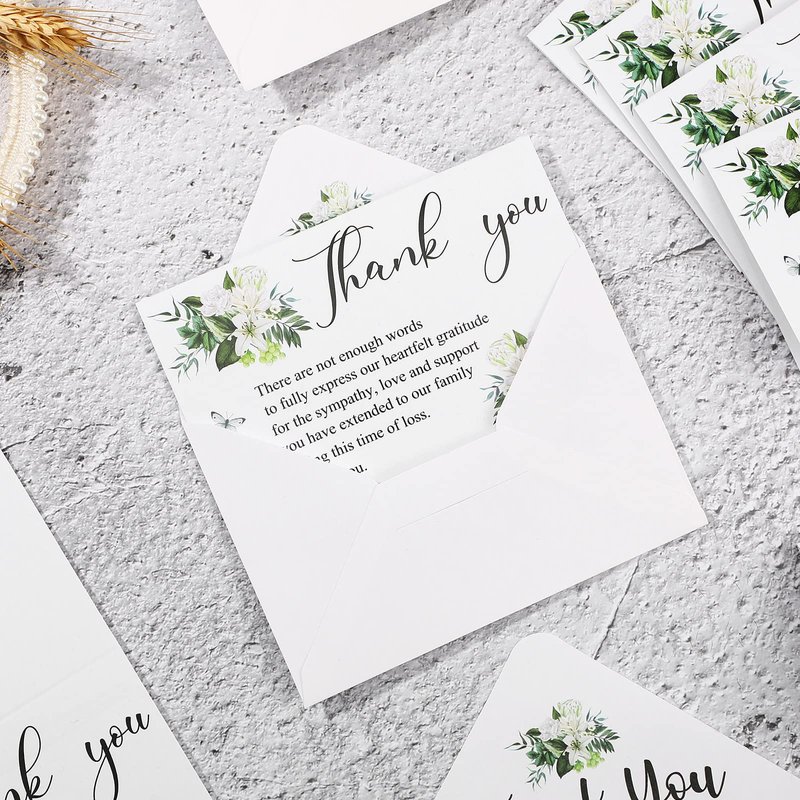 - Thank You Funeral Cards with Envelopes: this set of thank you card for funeral consists of 50 funeral thank you cards and 50 envelopes; The complete set will be convenient for you to express your gratitude to friends, family and relatives