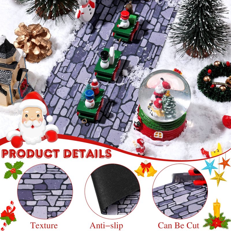 Marspark Christmas Village Accessories 5 x 50 Inch Christmas Miniature Road Village Street Mat Xmas Village Snow Street Decorations for Little Village Landscape (Gray Gravel Road Style)