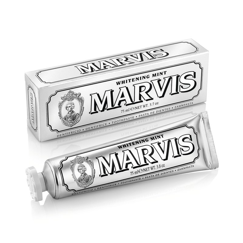 - Marvis Whitening Mint, with a sharp taste of cool mint for a pleasant and lasting freshness, helps remove plaque, while gently whitening teeth, for a brighter, more beautiful, splendid smile