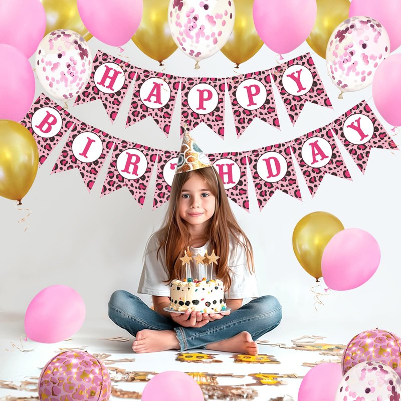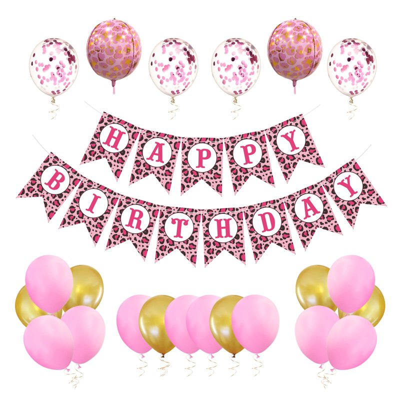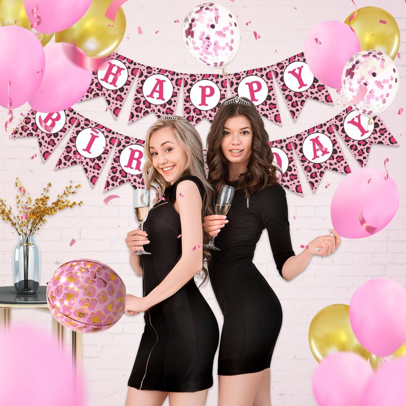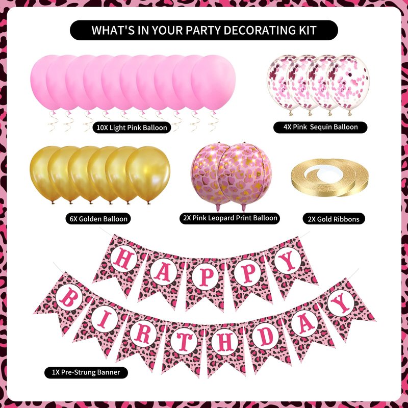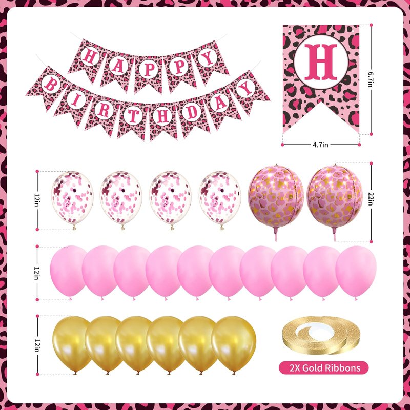 - Set of 25 Pieces: Our decoration set includes 1 happy birthday banner,2 round pink leopard foil balloons,10 pink balloons,6 gold balloons,4 pink confetti latex balloons and 2 gold ribbons to ensure that your party is fully decorated and complete.