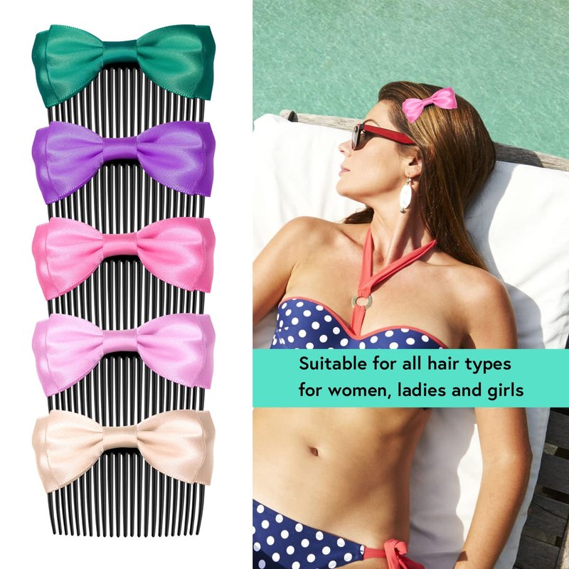 MARY LAVENDER Hair Clips Side Hair Comb with Bows for Bangs French Twist Hair Pin Clips Hair Accessories Hair Styling Decorative Comb for Women Kids Girls 5pcs