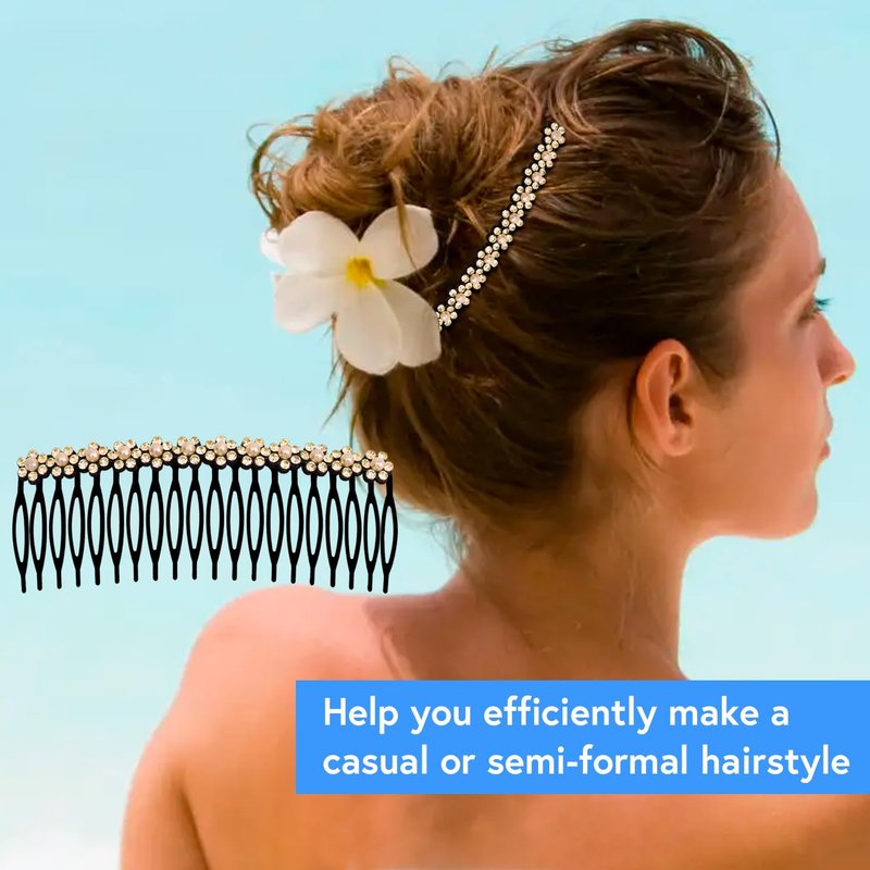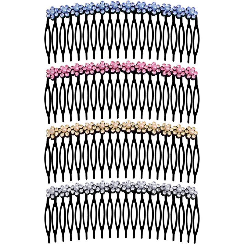 MARY LAVENDER Metal Side Hair Comb with Rhinestone and Pearls for French Twist Bangs Hair Pin Clips Hair Accessories Decorative Comb for Women Kids Girls 4pcs