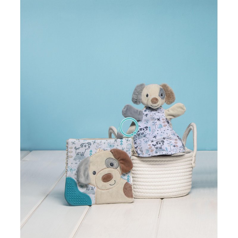 - SPARKY PUPPY: Charming doggy buddy with light tan fabric and custom designed puppy print; this cutie features floppy ears and sweet sculpted face with embroidered details for total softness