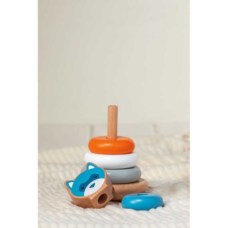 Mary Meyer Leika Wooden Toys Stacking Rings Montessori Toy for 24+ Months Old Toddler Preschool Gifts, 4.25 x 7-Inches, Raccoon & Fox