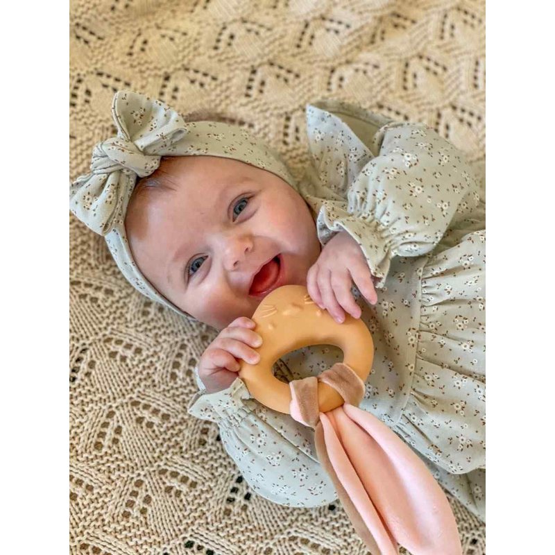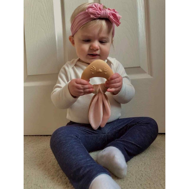 - LITTLE BUNNY: Ring silicone teething toy is BPA, PVC, and Phthalate free; fabric ears made of the softest velour, fun for baby to hold onto, rub, chew on, and explore