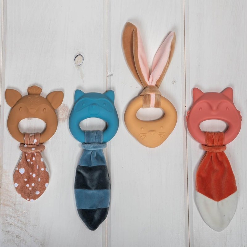 - BABY TEETHER: Adorable combo of soothing molded silicone and super soft fabric, comforts teething babies and provides sensory stimulation