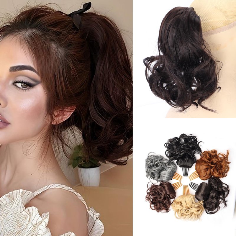 Brand Name:Short Wavy Drawstring Ponytail Hair Extensions Comb Clip Brown Ponytails