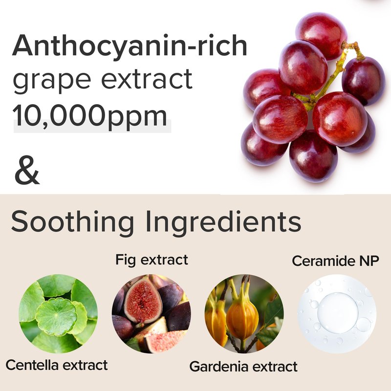 - 10,000ppm of Grape extract and Hyaluronic acid strengthen luminous and clean skin