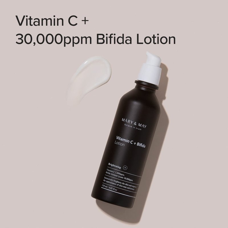 Mary&May Vitamin C + Bifida Lotion, 30,000ppm Bifida fermentation with 1,000ppm Vitamin C to brighten dull skin and moisturization 4.05 fl oz