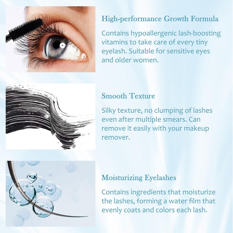- WATERPROOF & SMUDGE-PROOF & LONG LASTING - With a unique formula, our waterproof mascara black for the elderly are stronger sweat-proof, smudge proof, long-wear, and no clumps. The volume lengthening mascara is light and smooth texture, your eye lashes will have natural, thick, curly and perfect after drying.