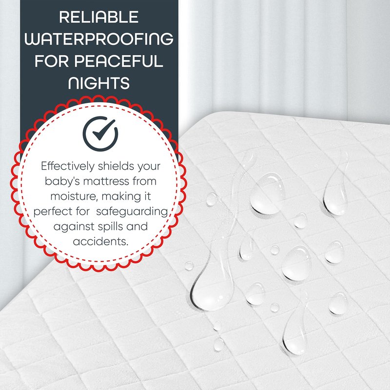 - EFFICIENT WATERPROOFING - Our waterproof crib mattress protector effectively shields your baby's mattress from moisture, making it perfect for safeguarding against spills and accidents.
