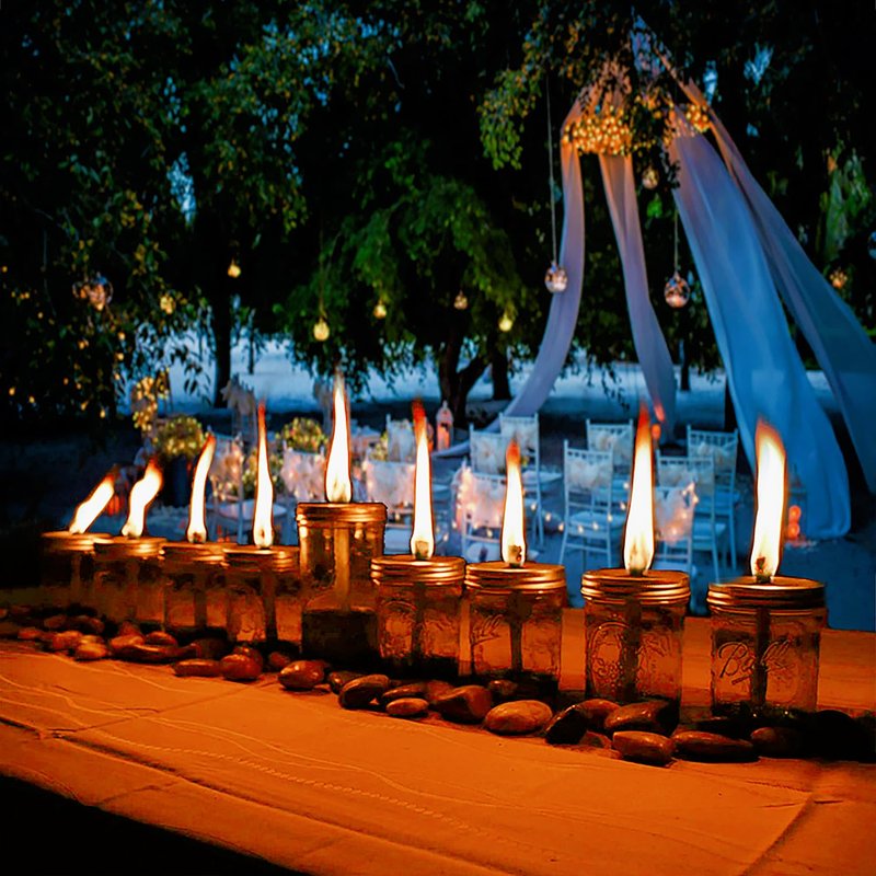 - Anti-rust&Burn Mark Resistent:Mason jar oil lights lids and caps are all black coating,The table torch wicks breathe a warm lights create a romantic atmosphere,perfect for garden lighting, bar,sea side,patio,table ,or outdoor lighting.