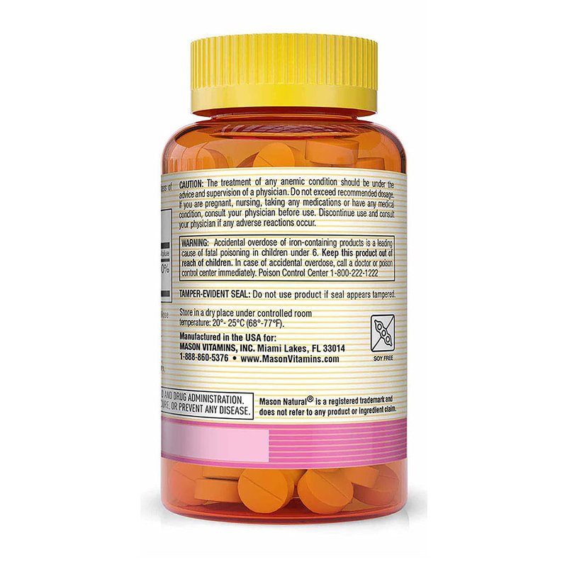 Mason Natural Ferrous Gluconate - Supports Red Blood Cell Formation, Gentle on Stomach Iron Supplement, 100 Tablets