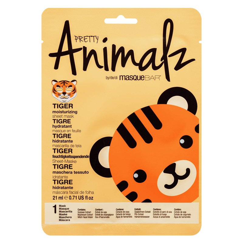 masque BAR Pretty Animalz Tiger Facial Sheet Mask (6 Pack) — Korean Beauty Skin Care Treatment — Antiseptic, Evens Skintone, Anti-Inflammatory, Anti Aging — Spa Fun Face Mask Sheets Animal Characters