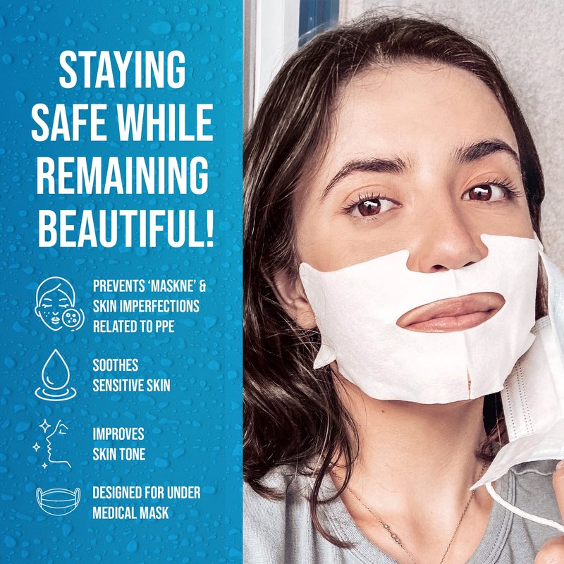 Our facial sheet mask is the ultimate solution for the unfortunate side effect of wearing masks: mask-acne. It helps you fight against breakouts. Wear it under your PPE anytime, anywhere!