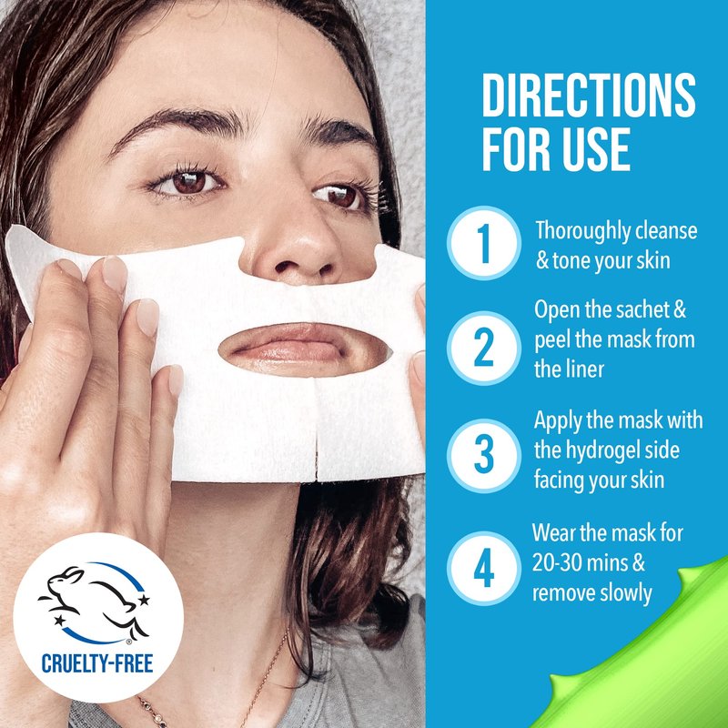 - Infused with Hyaluronic Acid - Replenish your skin from the drying effects of safety face masks. Use our serum-packed hydrogel facial mask that contains hyaluronic acid, a gel-like substance that locks in moisture and helps regenerate skin cells for a softer and smoother touch.