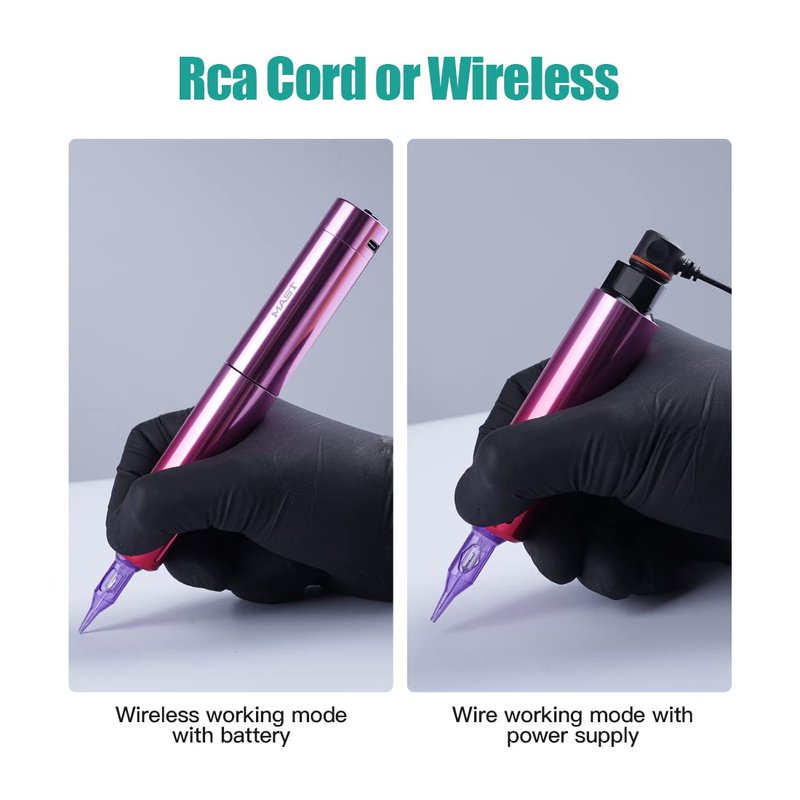 - Wireless or Cord Tattoo Pen Machine: The Mast Tour Y22 machine keep rca jack, you can use it wireless or cord. And spin the battery part to adjust cartridges needles depth.