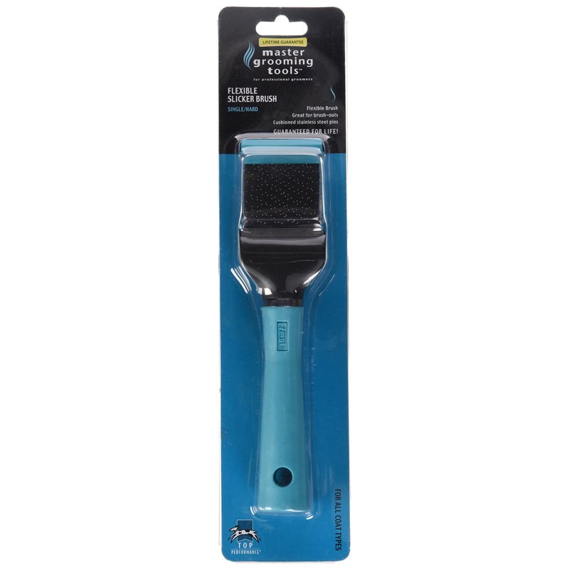 Master Grooming Tools Flexible Single Side Pet Slicker Brush with Hard Handle, Small, Teal