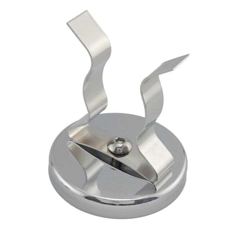 - DURABLE CONSTRUCTION: The round base magnet fastener is made of nickel-plated steel with the cup containing a ceramic, ferrite magnet with a spring steel clip attached.