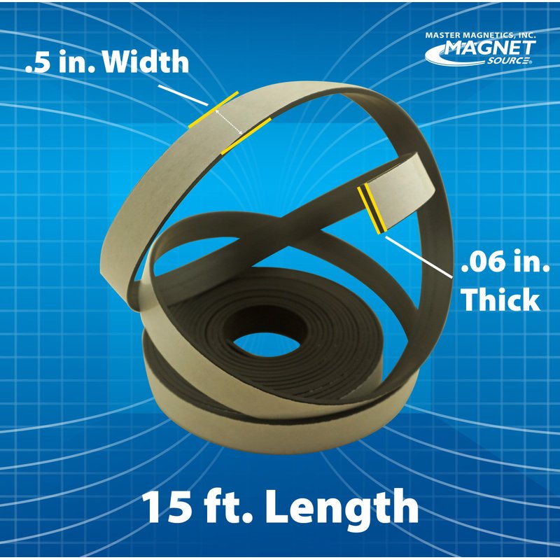 Master Magnetics Roll-N-Cut Flexible Magnetic Tape Refill - 1/16" Thick x 1/2" Wide x 15 Feet, 1 Roll, 07518