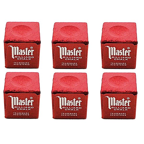 Master Set of 6 Red Billiard Pool Cue Chalk