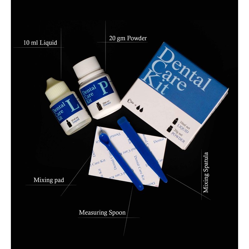 - 20 gm Powder + 10 ml Liquid + Mixing pad + Measuring Spoon + Mixing Pad + Leaflet for instructions