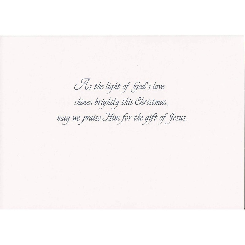 - Inside verse in blue ink: as the light of God's light shines brightly this Christmas, may we PRAISE him for the gift of Jesus.