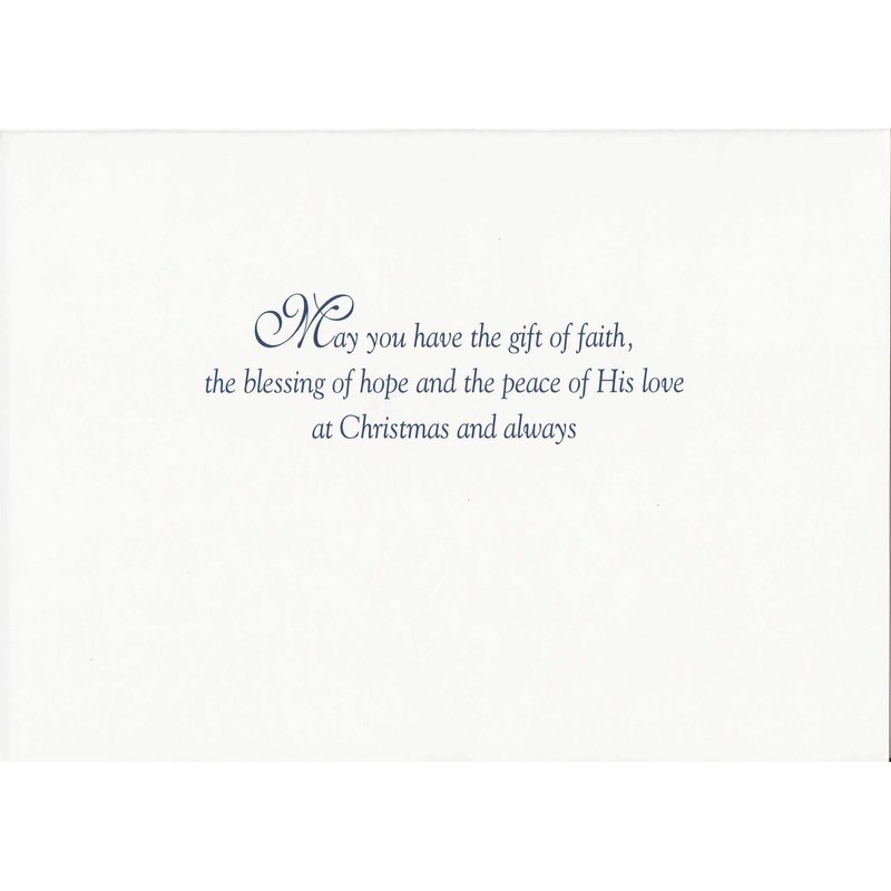 - Inside verse printed in blue: may you have the gift of faith, the blessing of Hope and the peace of his love at Christmas and always