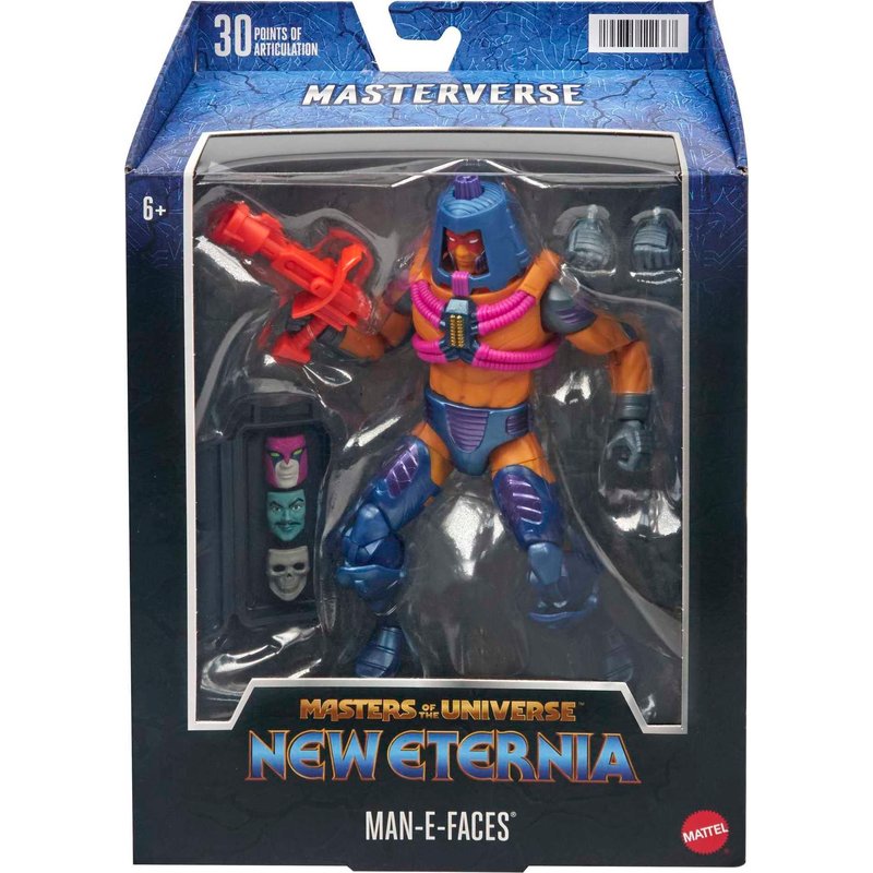 - This Masterverse Man-E-Faces action figure stands 7 inches tall with detailing authentic to the He-Man and the Masters of the Universe character.