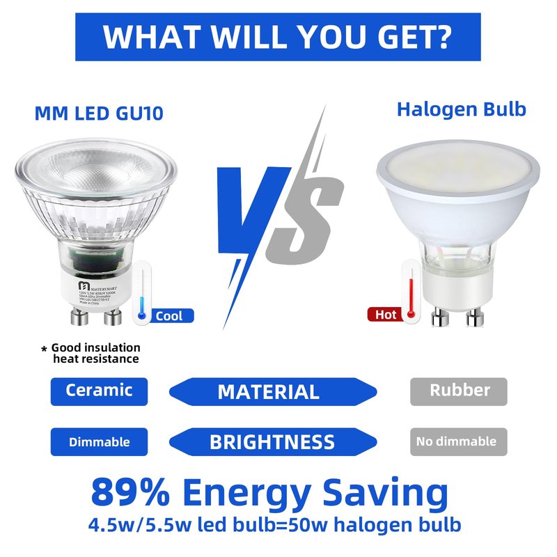 - 【Energy-saving GU10 Light Bulb LED】: Replace your 50W halogen bulbs with MASTERY MART 5.5W GU10 Bulbs 400lm, saving up to 85% on electricity bills while maintaining brilliant illumination. eco-friendly and cost-effective solution for your lighting needs.